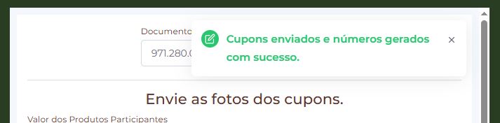 Após clicar em “Adicionar” você irá ver uma mensagem de “Cupons enviados e números gerados com sucesso“.